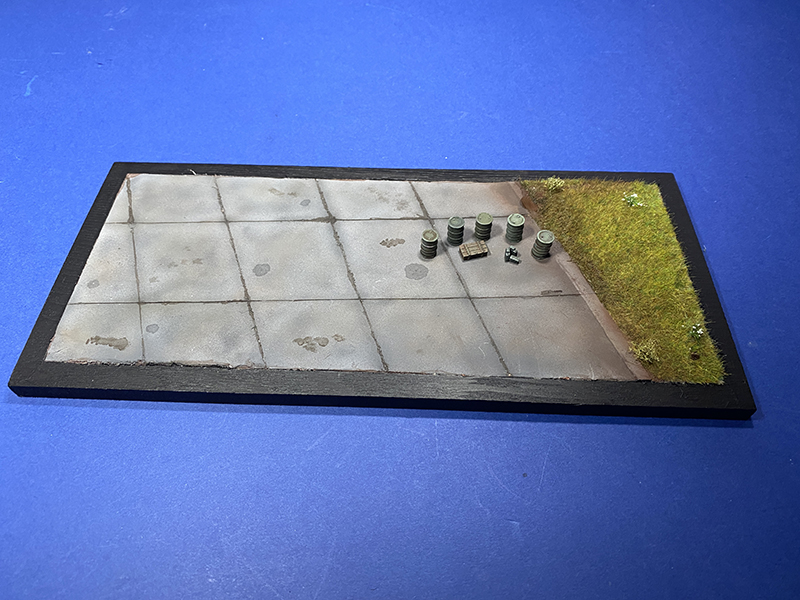 Basically, I raided my spares collection for Jerry cans and wooden crates. The oil drums I purchased from a seller on Etsy. Etsy is useful for finding affordable little items like the oil drums and even figures.